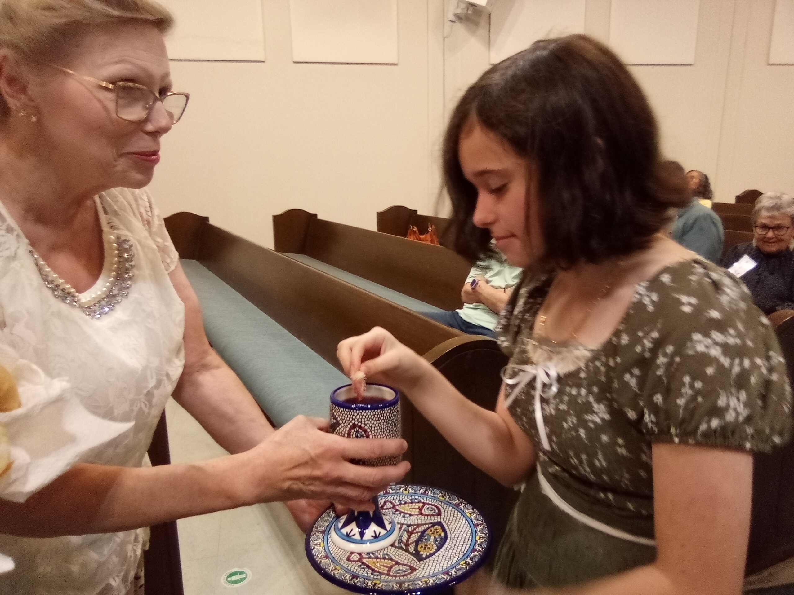 Holy Communion, or the Eucharist, is open to all people. It is based off of Jesus's visit and meal with his disciples in the upper room. We serve bread broken from a whole loaf joined with a cup of grapejuice. Our prayers iask for the pouring of the Holy Spirit upon our hearts as well as the bread & cup for Jesus.